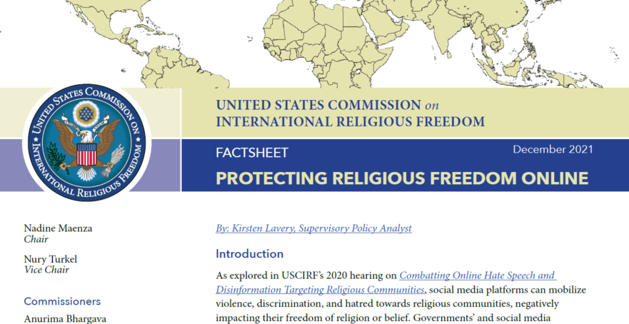 The United States Commission on International Religious Freedom (USCIRF) released a factsheet on December 3rd on safeguarding the freedom of religion or belief on social media platforms.